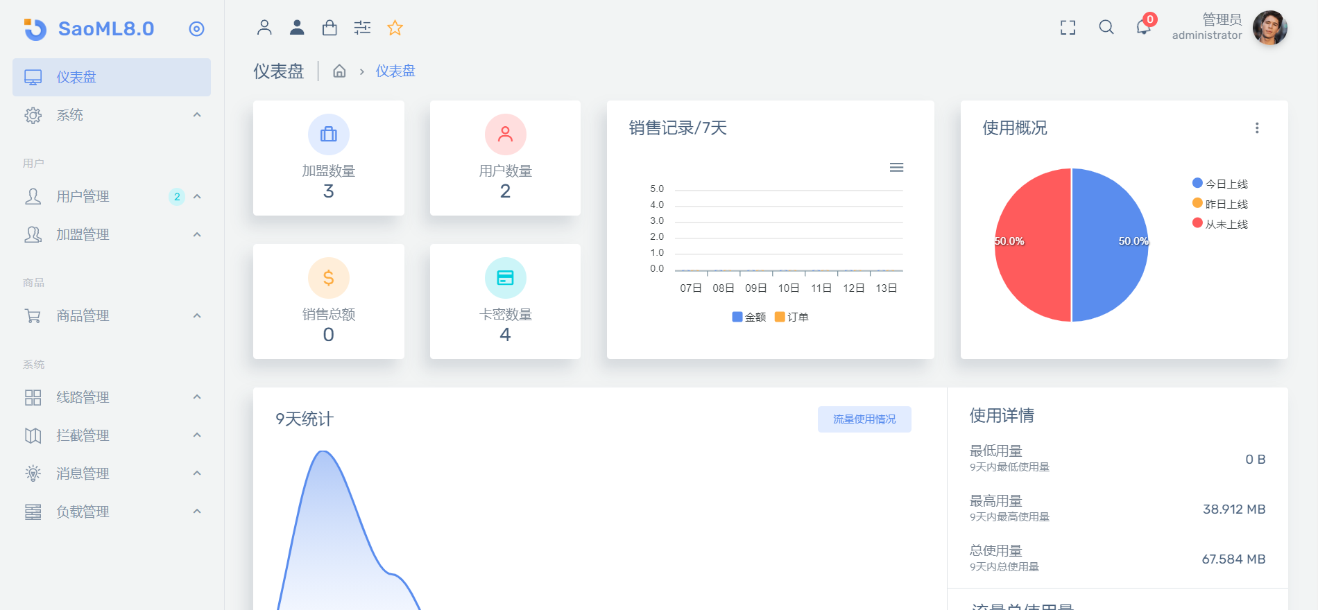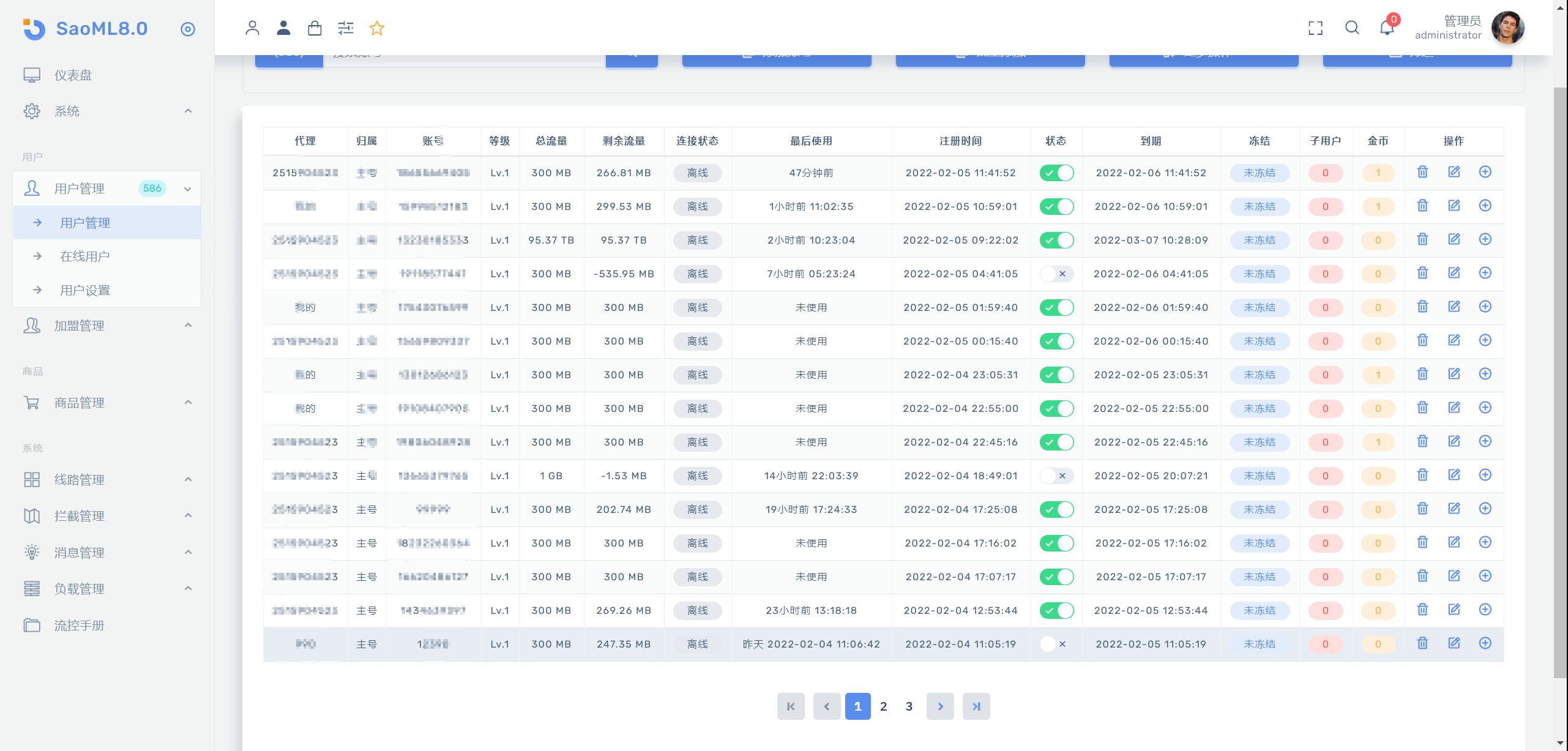 2.方便快捷的管理用户账号,流量,设备数限制.